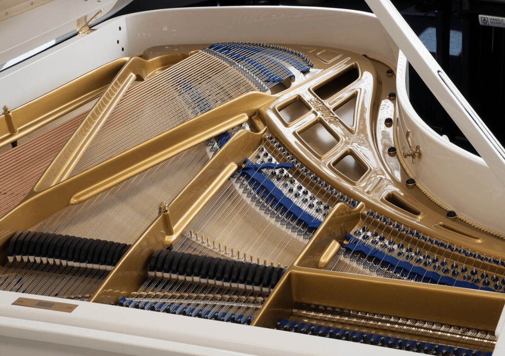 Blüthner 鋼琴以 溫暖、渾厚又富有色彩層次的音色 著稱,其中關鍵之一就是 Aliquot 附屬弦系統。這個設計透過額外共鳴弦的震動,讓泛音更豐富,使整體聲音更立體、有深度,演奏時能感受到非常細膩的共鳴與厚度。
