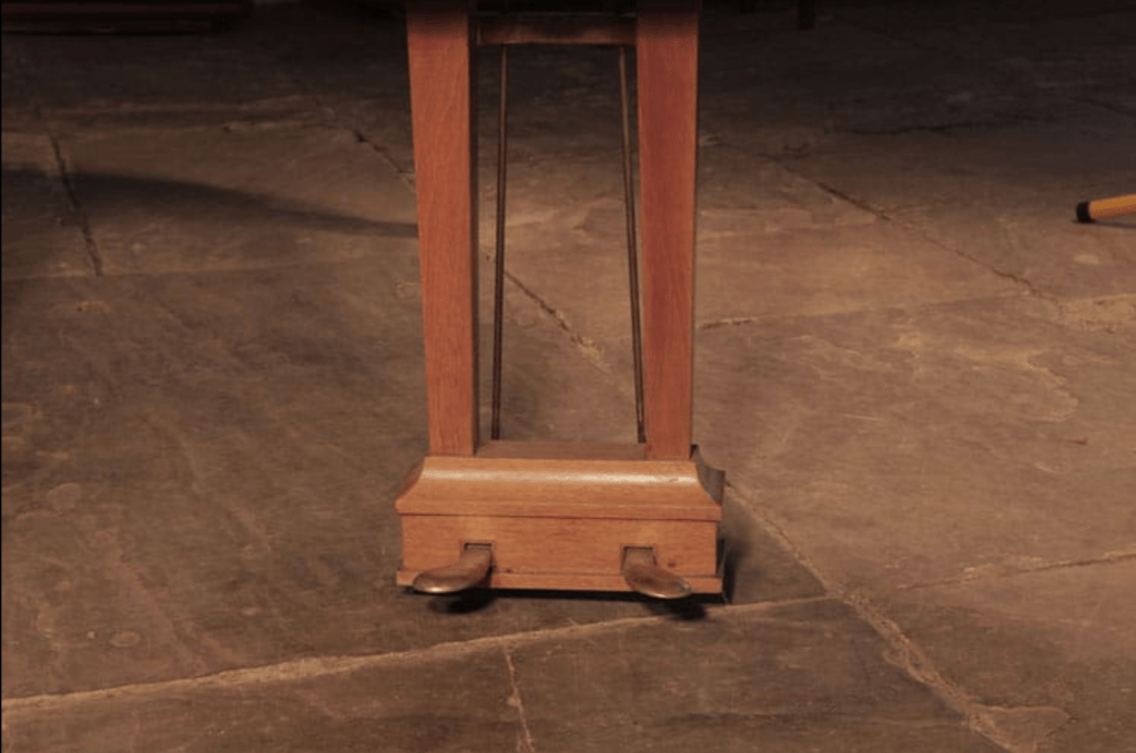 這台 Model O 採用經典的 三角鋼琴里拉踏板架 配置: